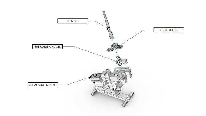 There are hundreds of possible component combinations in fountain technology. Depence allows you to easily connect different types of nozzles with various types of moving fixtures and lights. With Depence it is now possible to simply “snap” fixtures onto other fixtures. This makes it easy to quickly test different permutations of water effects.